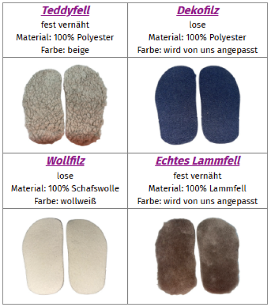Wollfilzeinleger 22-26 (+ 7,00 EUR)
