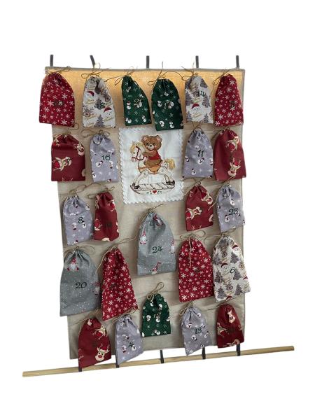 Gestalte deinen Advents-/Weihnachtskalender ganz individuell. Wähle einen Hauptstoff für den Körper des Kalenders und Nebenfarben für Beutel & Details.