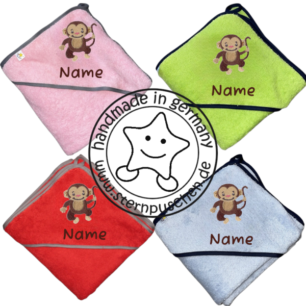 Kapuzenbadetuch / Lätzchen / Waschhandschuh mit Affe