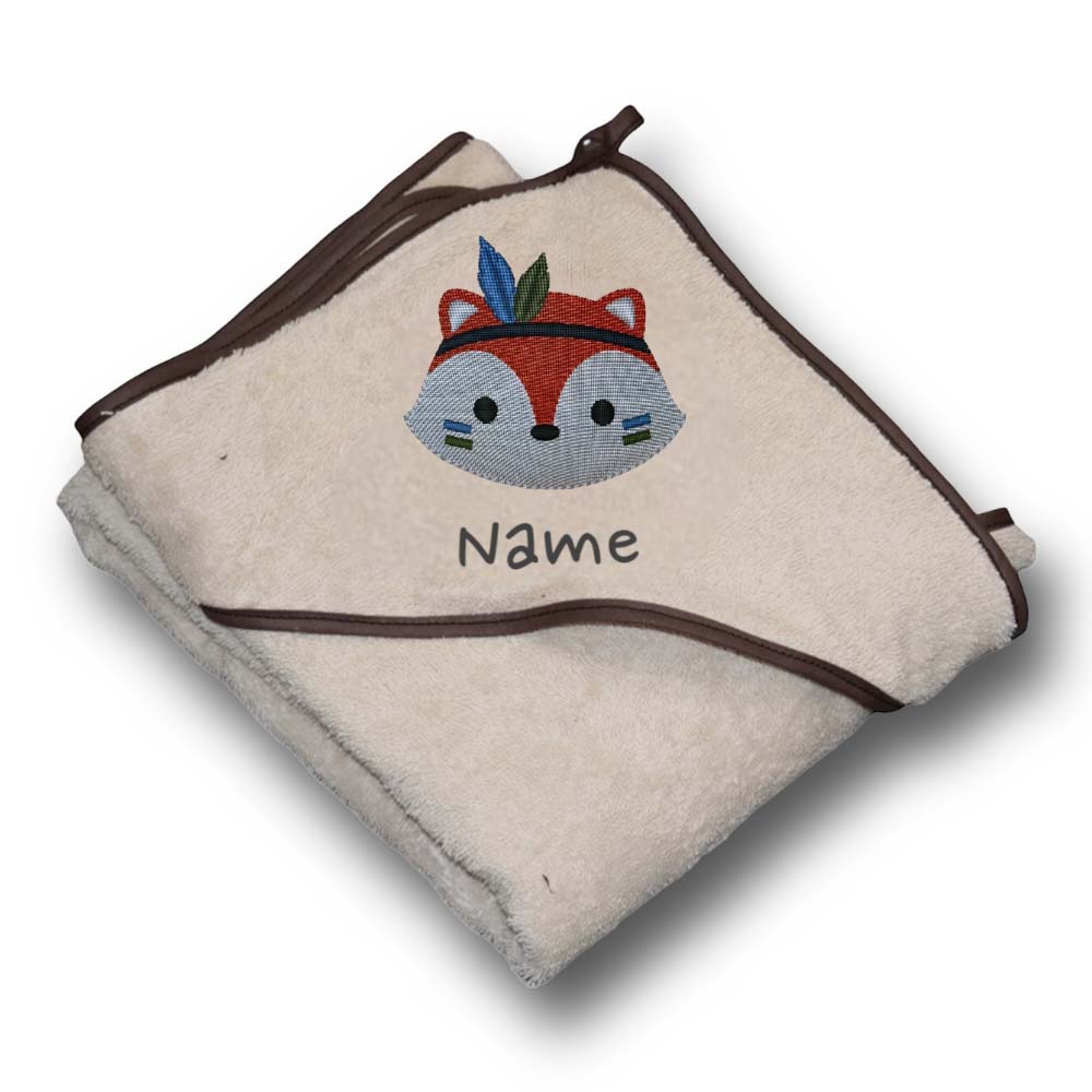 abgebildet ist, in diesem Fall Kapuzenbadetuch Fuchs auf beige