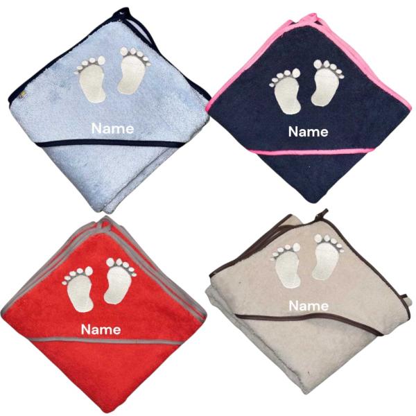 Kapuzenbadetuch / Lätzchen / Waschhandschuh mit Füße