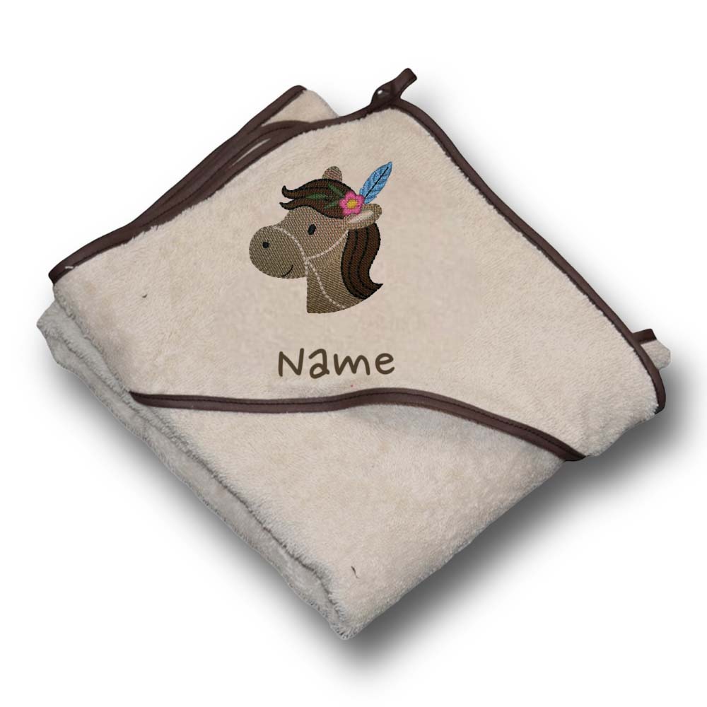 abgebildet ist, in diesem Fall Kapuzenbadetuch Pferd auf beige