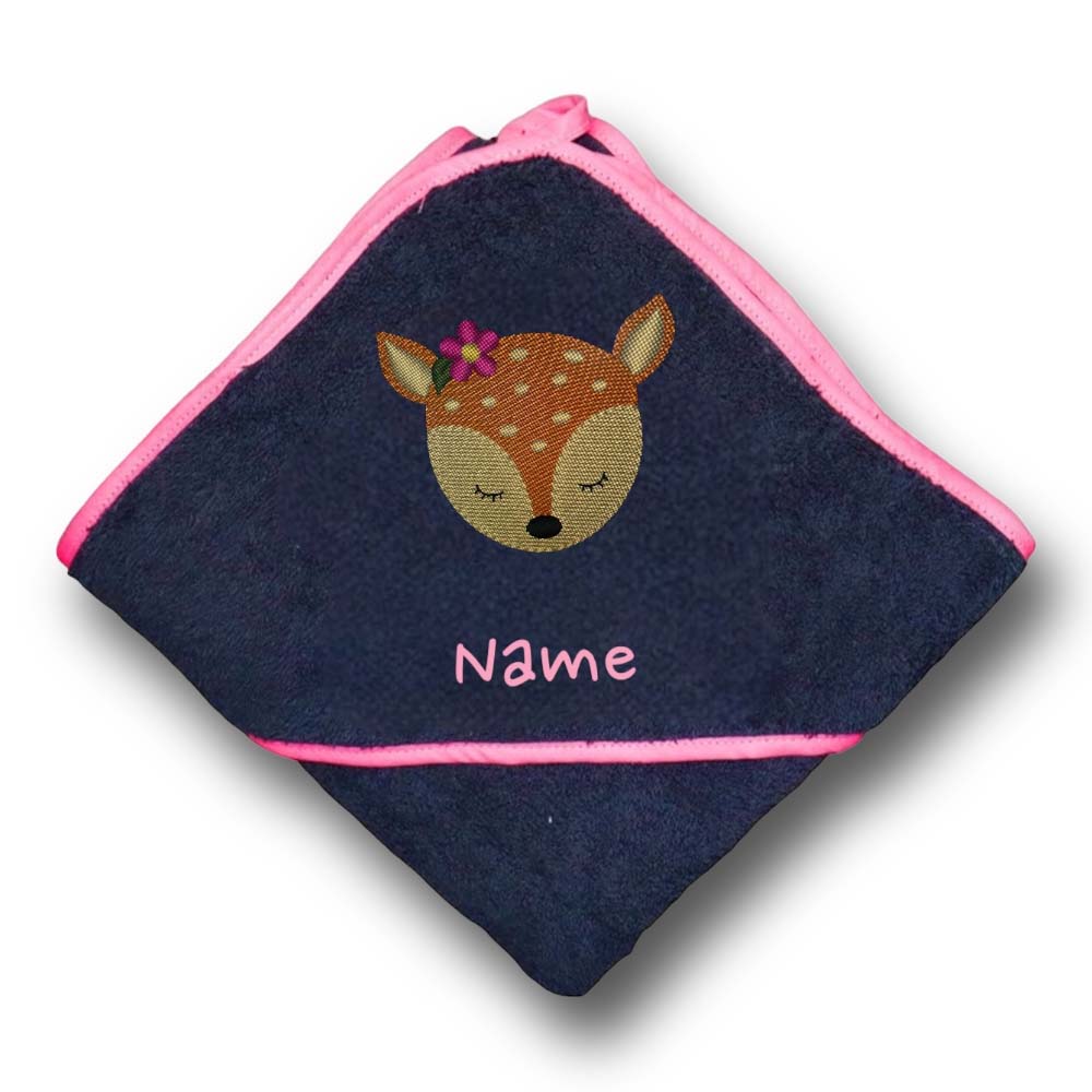 Kapuzenbadetuch Reh auf blau