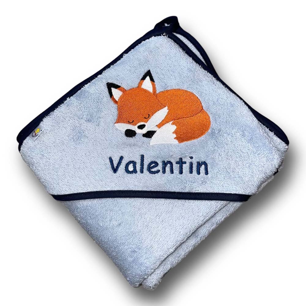 Kapuzenbadetuch schlafender Fuchs auf blau