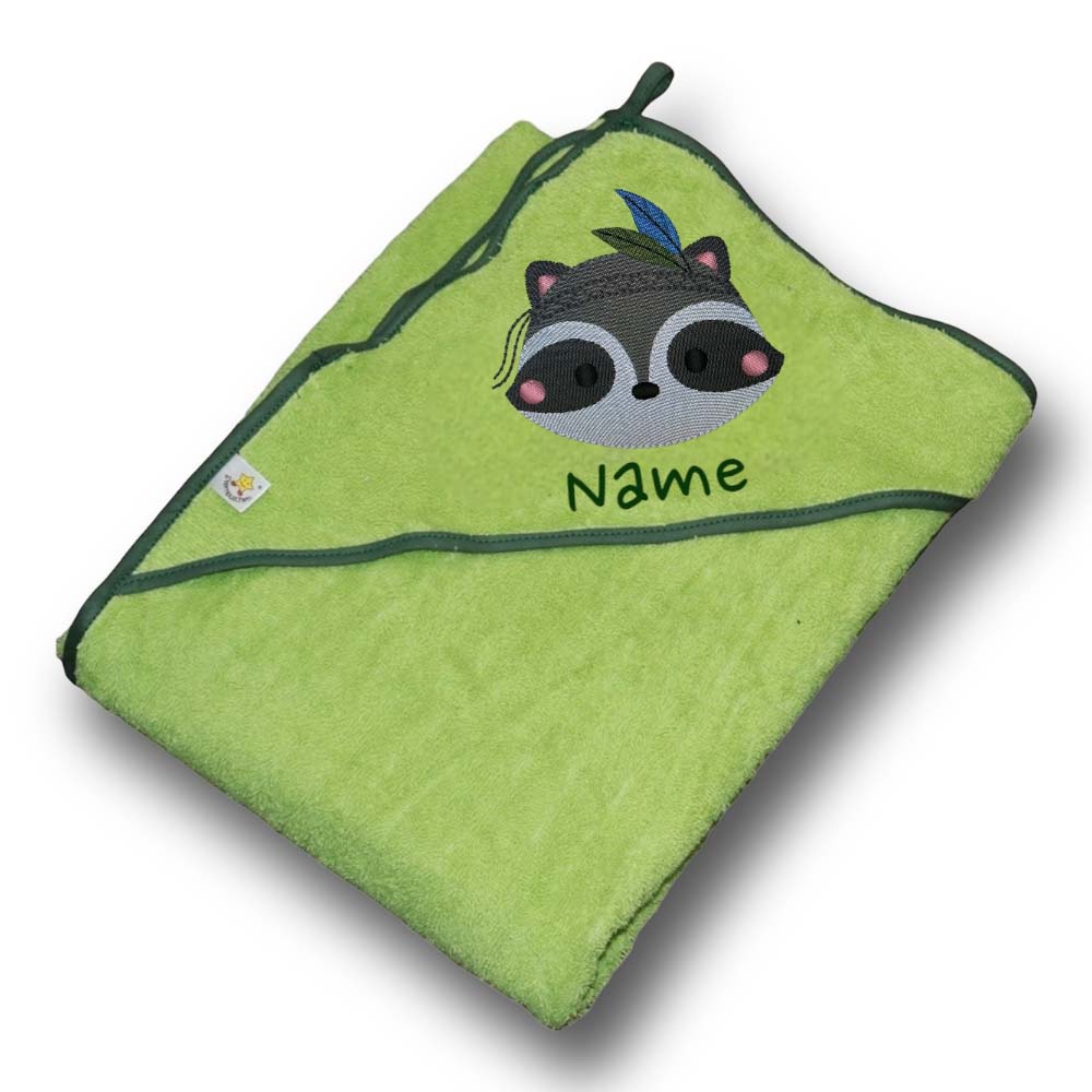 abgebildet ist, in diesem Fall Kapuzenbadetuch Faultier auf grün