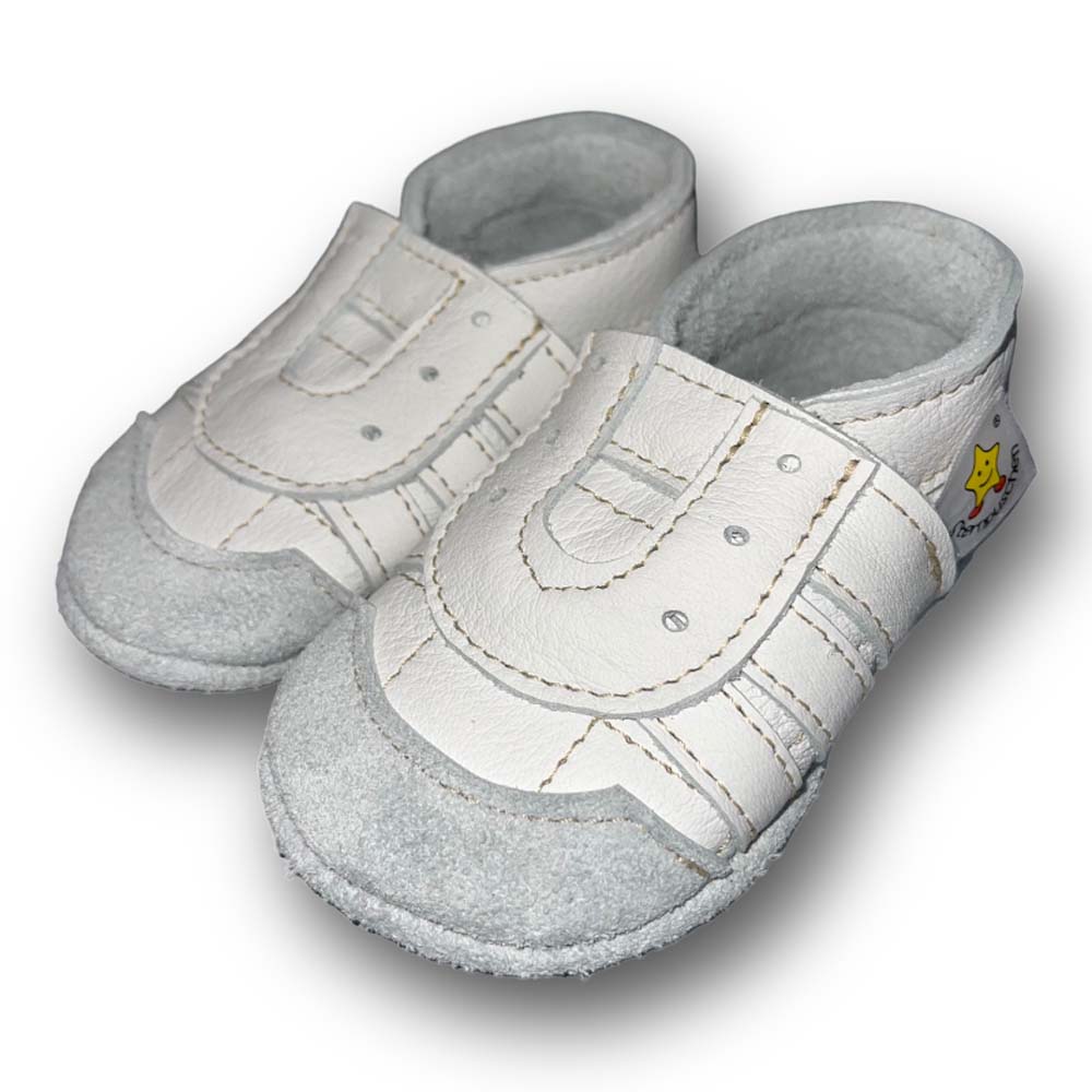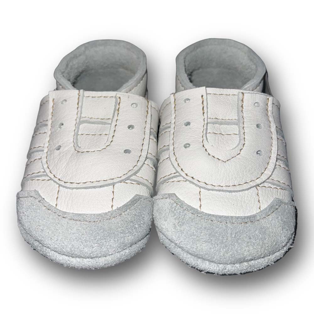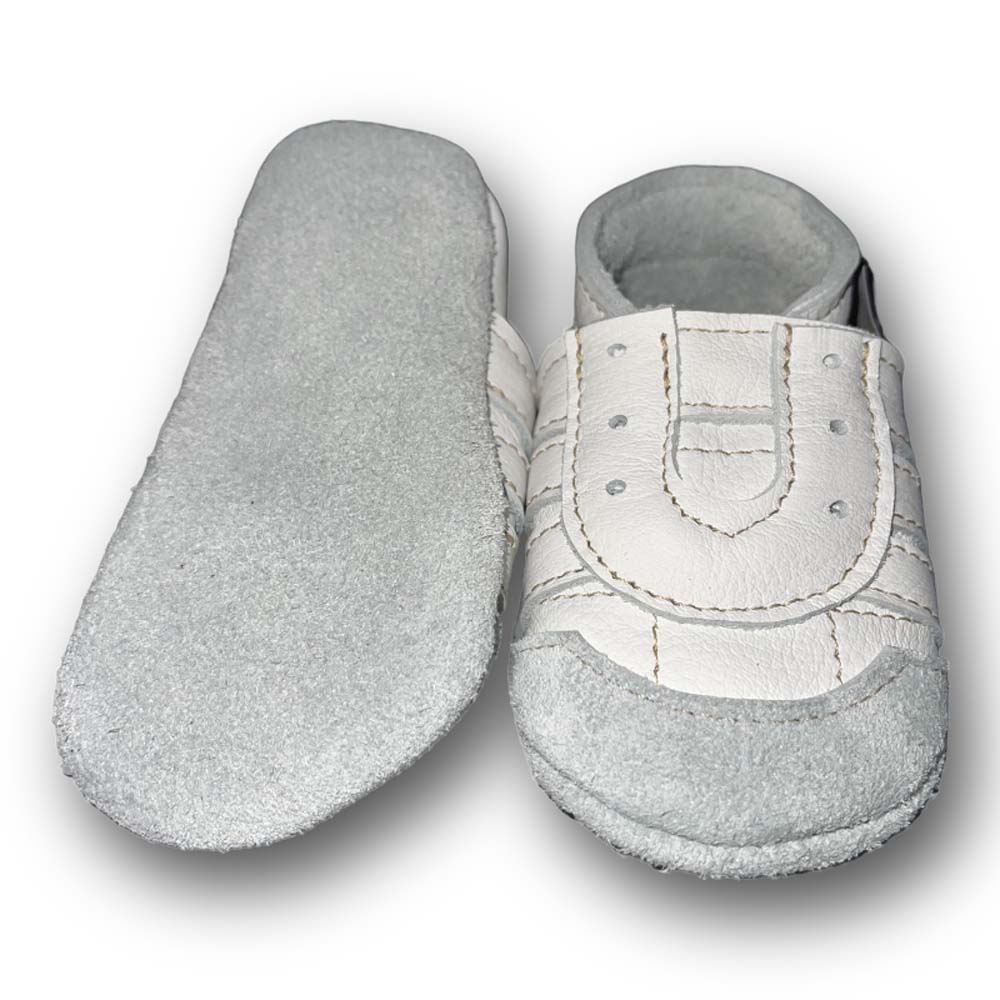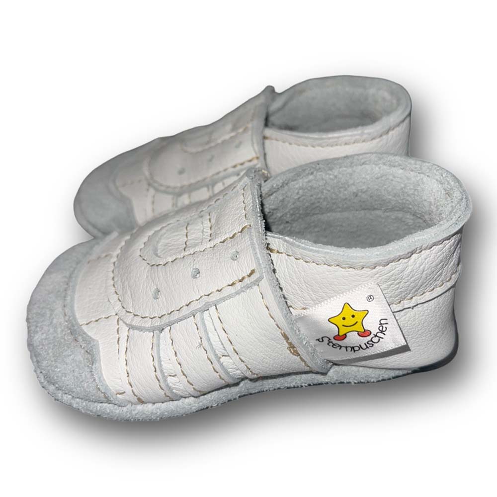 Krabbelkappe für zusätzlichen Zehenschutz und eine sportliche Optik. Jedes Paar entsteht in liebevoller Handarbeit