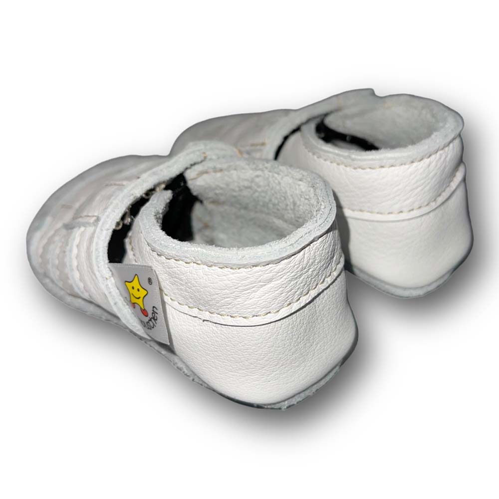 Hochwertige, personalisierte Babyschuhe aus ökologischem Leder – flexibel, leicht und komfortabel.
