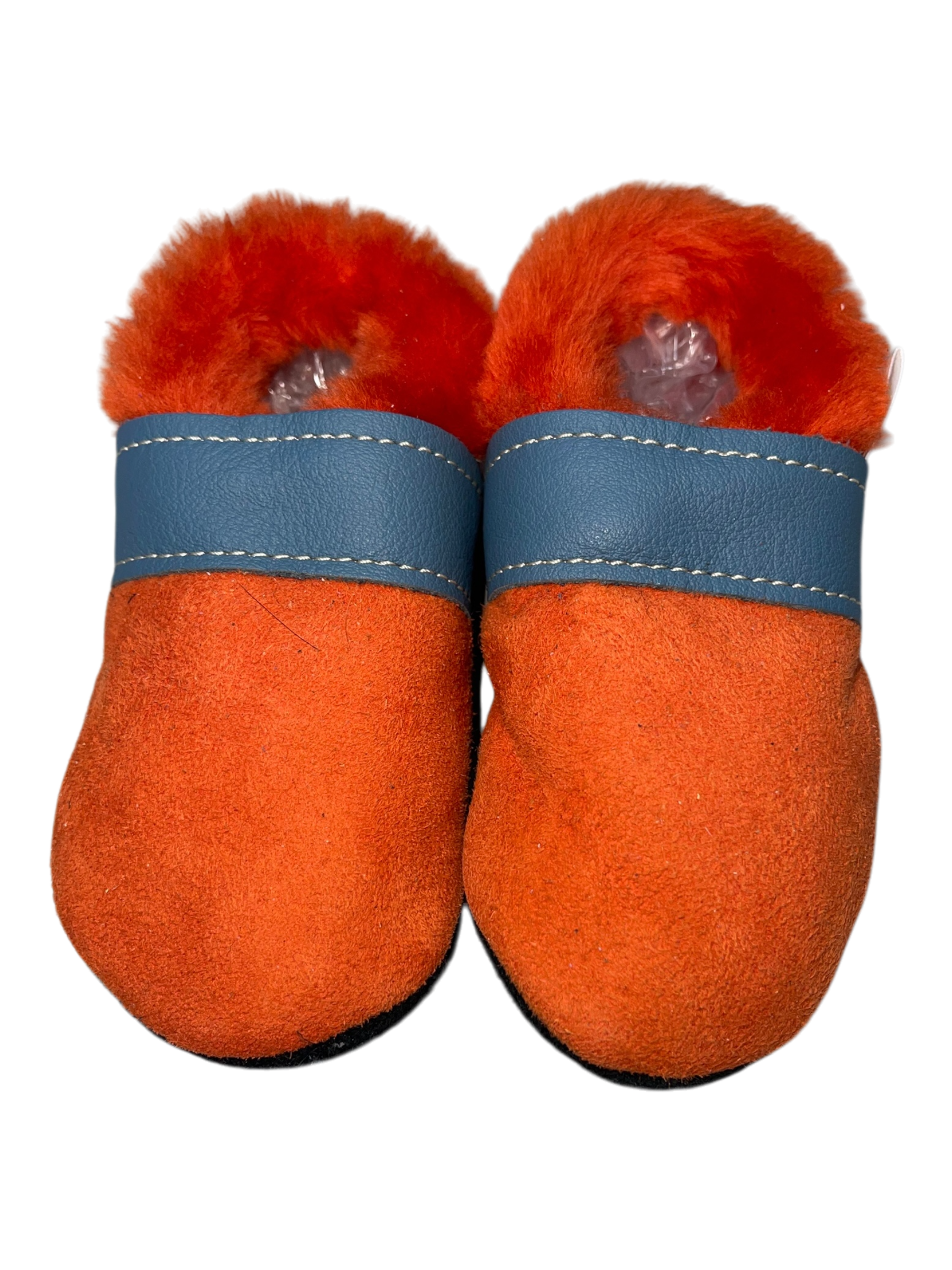 Preview: Krabbelschuhe in orange mit Lammfell