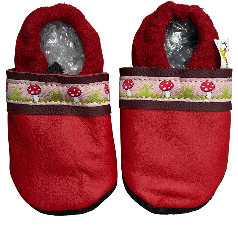 Lederpuschen in Rot mit Webband