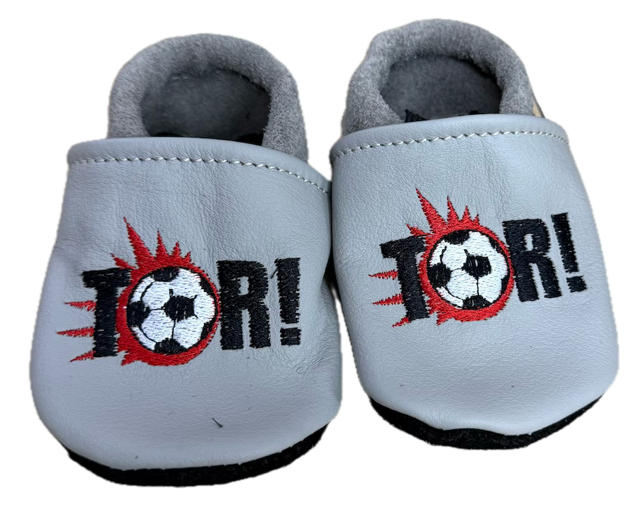Lederpuschen Tor auf Grau