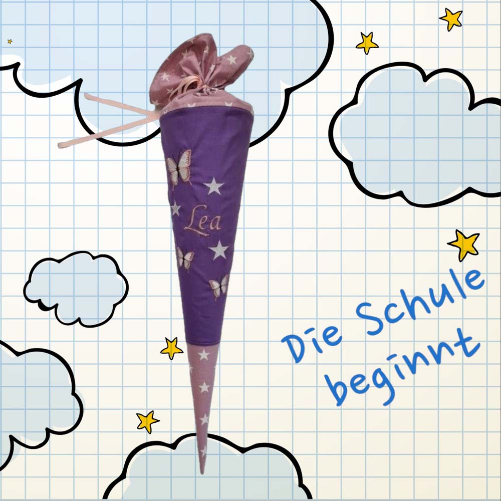 Preview: Schultüte Schmetterling auf lila in verschiedenen Größen