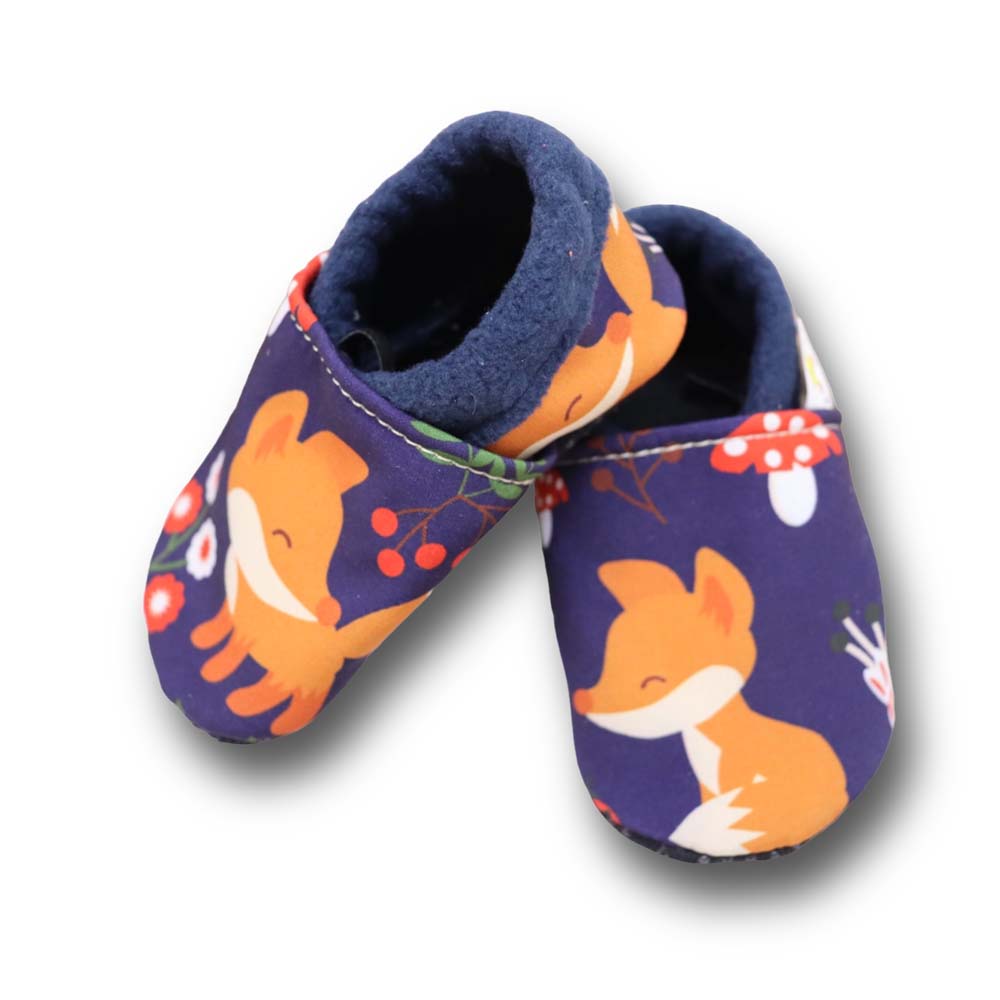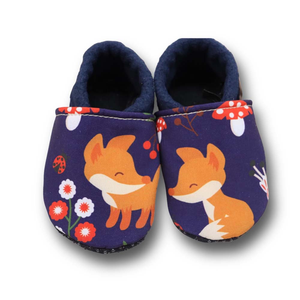 Mobile Preview: Vegane Krabbelpuschen Fuchs auf blau