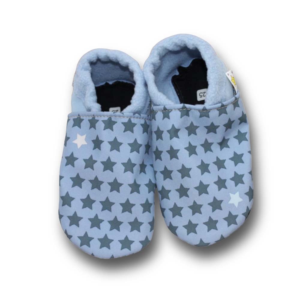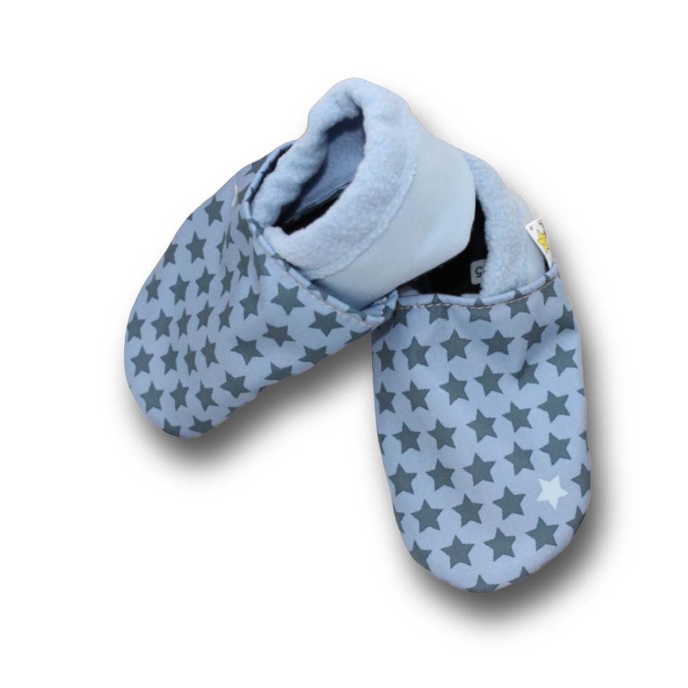 Vegane Krabbelpuschen Sterne auf blau