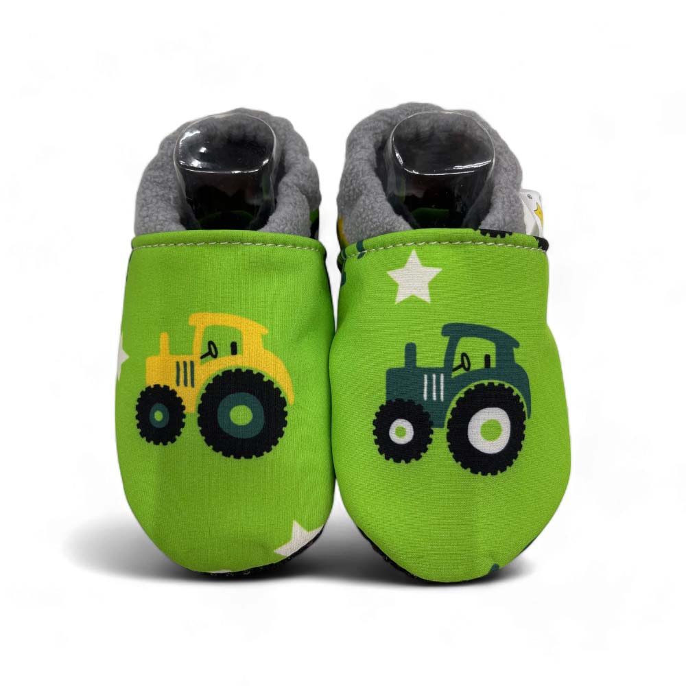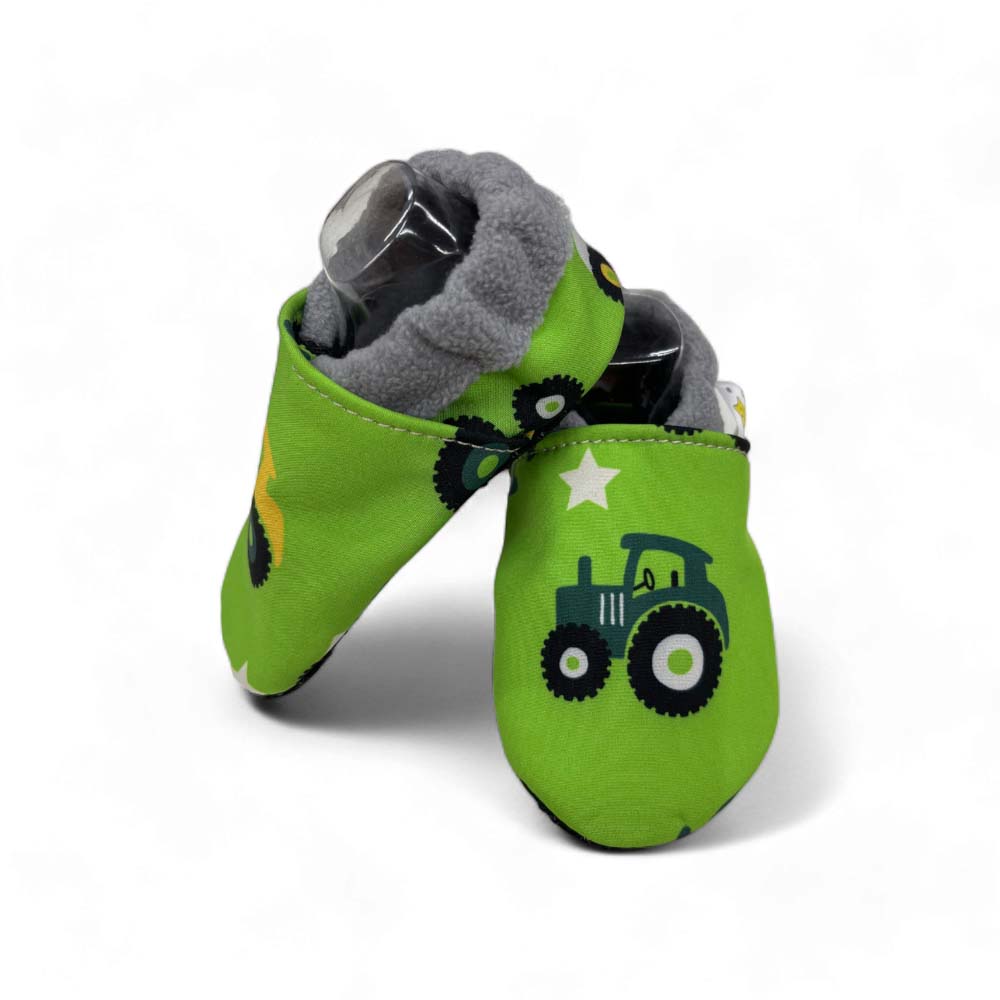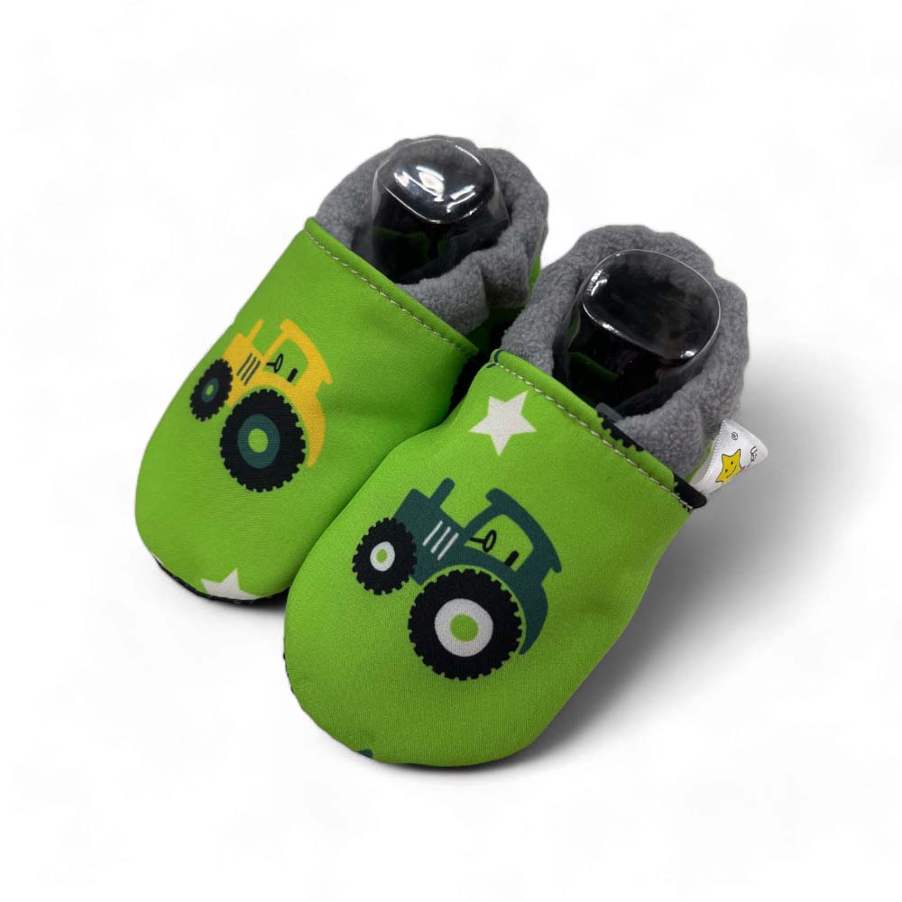 Mobile Preview: Vegane Krabbelpuschen Trecker auf grün