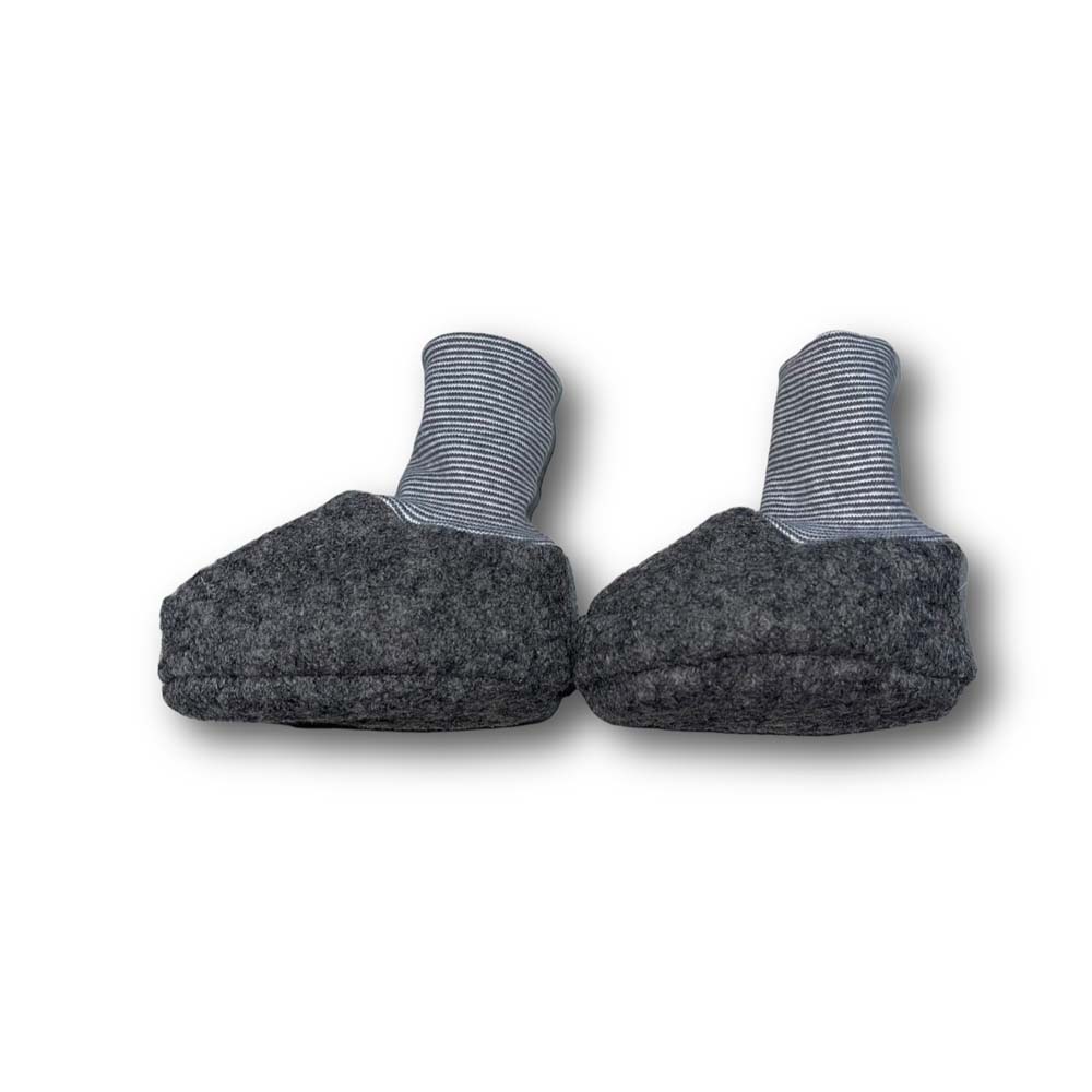Diese tollen Baby-Schuhe aus 100% Woll-Walk sind perfekt geeignet um die kleinen Füßchen gut zu verpacken und zu wärmen. Getragen werden sie über Socken oder Strampler, im Fußsack oder über dicken Wollsocken, wie es gerade passt.