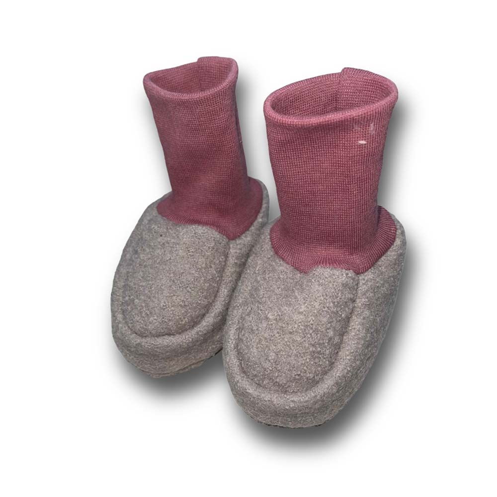 Diese tollen Baby-Schuhe aus 100% Woll-Walk sind perfekt geeignet um die kleinen Füßchen gut zu verpacken und zu wärmen. Getragen werden sie über Socken oder Strampler, im Fußsack oder über dicken Wollsocken, wie es gerade passt.