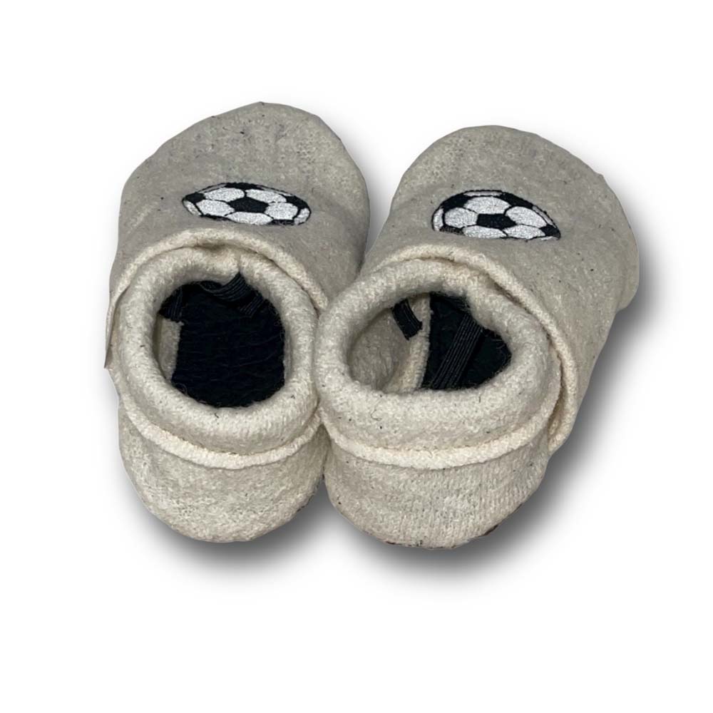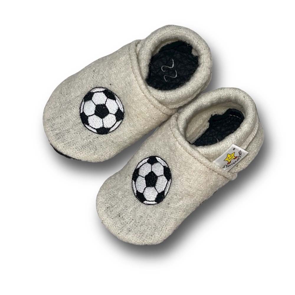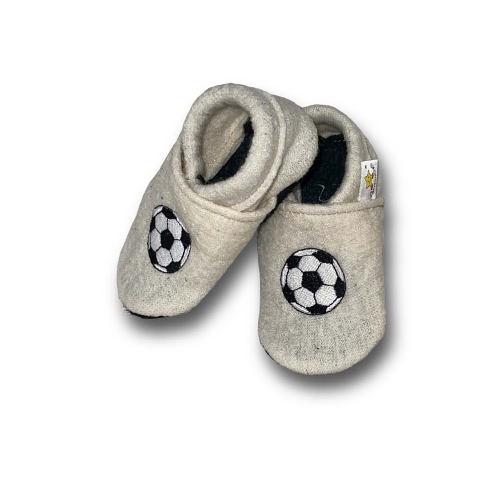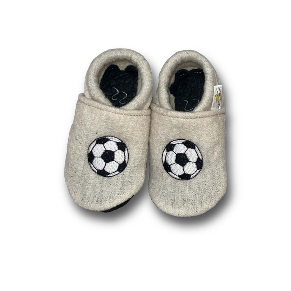 Mobile Preview: Walkloden-Puschen Fußball auf Cremeweiß
