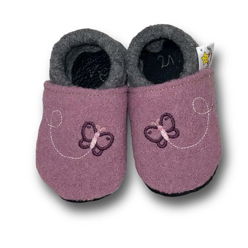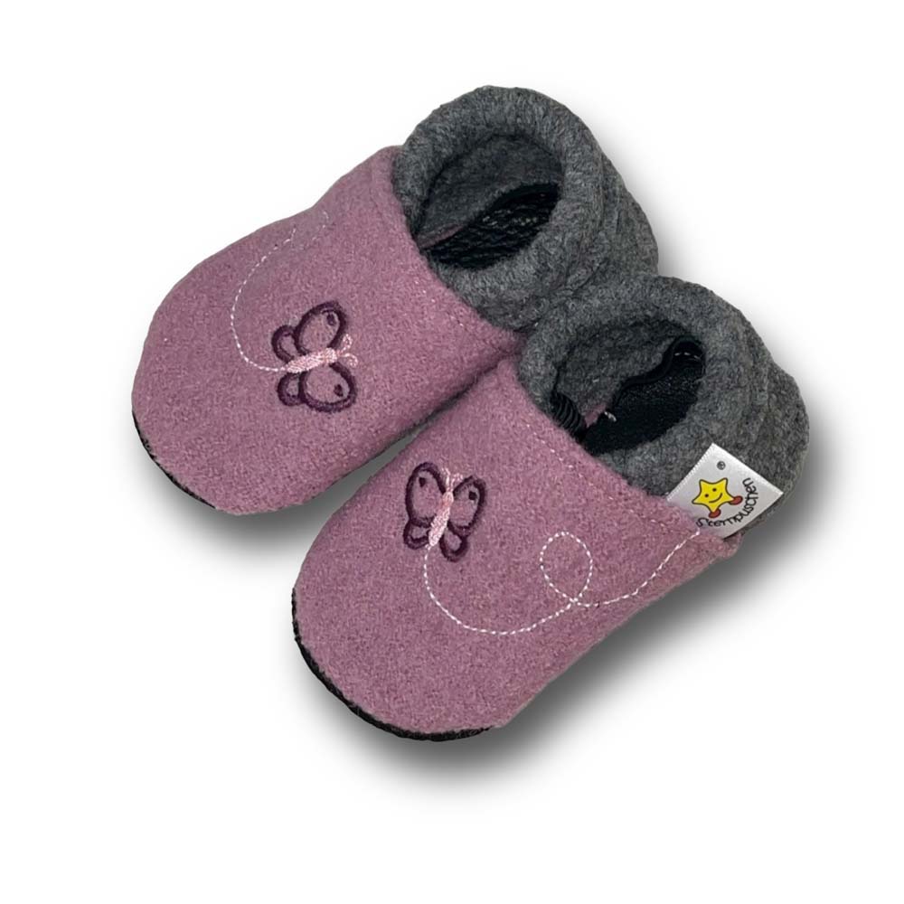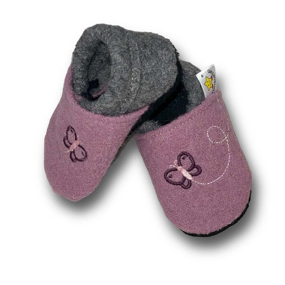 Mobile Preview: Walkloden-Puschen Schmetterling auf Altrosa