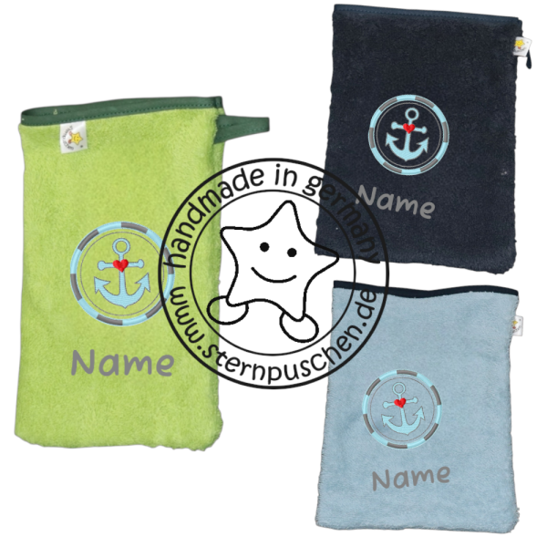 Waschhandschuh / Lätzchen / Kapuzenbadetuch mit Anker