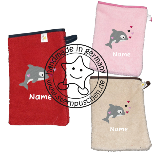 Waschhandschuh / Lätzchen / Kapuzenbadetuch mit Delfin